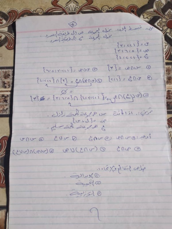 حل تمارين الرياضيات المجموعة الشاملة التقاطع والاتحاد