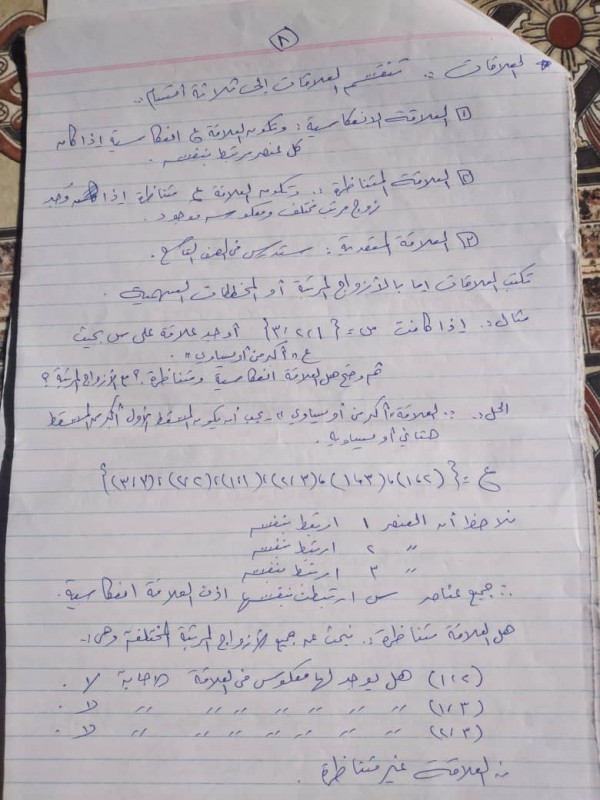 انواع العلاقات، امثلة على العلاقة الانعكاسية والعلاقة المتناظرة العلاقة المتعدية، حل تمارين العلاقات.